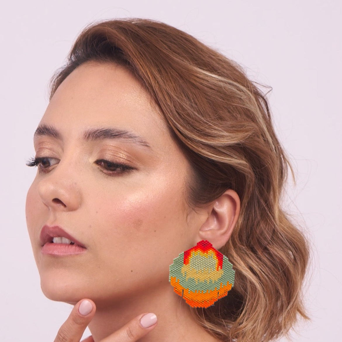 Aretes inspirados en el colibrí Rubí Topacio. Aretes tejidos 100% a mano, hechos con cristal japonés Miyuki, hilo de cera y aguja. Topos en acero recubiertos por tejido en Miyuki