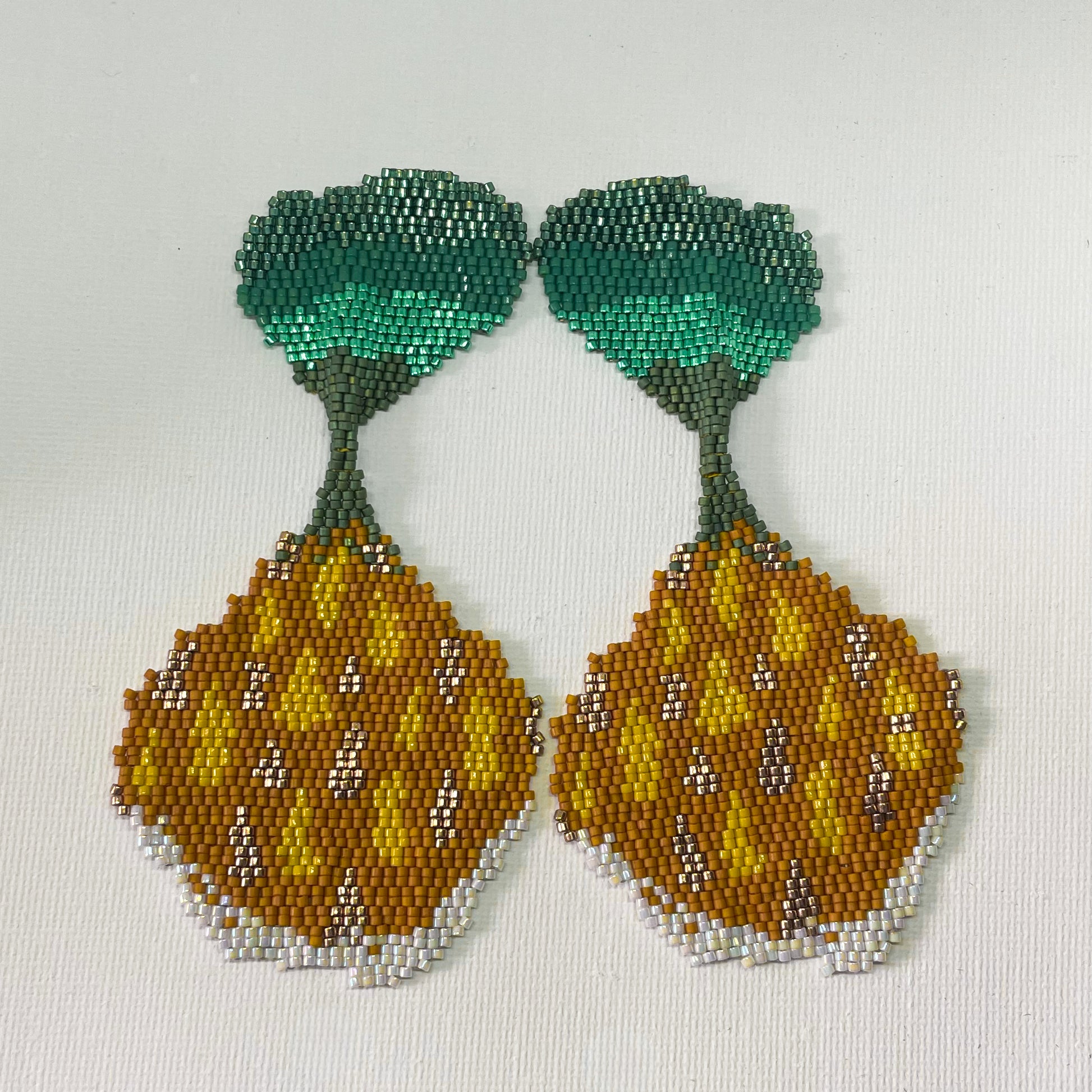 Aretes inspirados en el colibrí Rabudito de Raquetas. Aretes tejidos 100% a mano con un tiempo de elaboración de 11 horas hechos con cristal japonés Miyuki, hilo de cera y aguja. Topos en acero recubiertos por tejido en Miyuki.