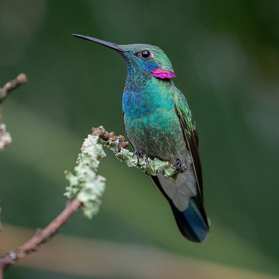 Aretes inspirados en el colibrí Orejimorado. Aretes tejidos 100% a mano con un tiempo de elaboración de 8 horas hechos con cristal japonés Miyuki, hilo de cera y aguja. Topos en acero recubiertos por tejido en Miyuki.