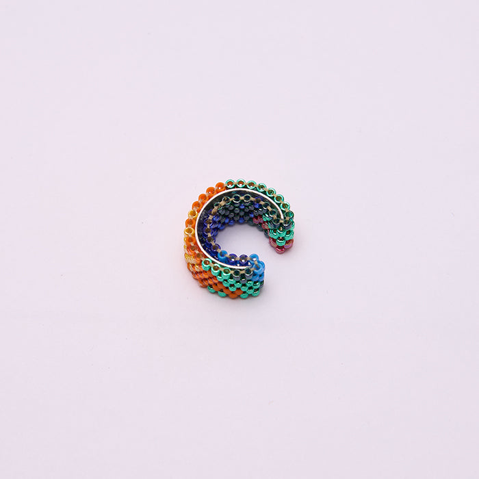 Earcuff inspirado en el colibrí de Coeligena Bonapartei. Tejidos 100% a mano, hechos con cristal japonés Miyuki, hilo de cera y aguja. Base en plata 950 recubierta en tejido Miyuki.