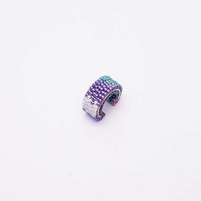 Earcuff inspirado en el colibrí Frentiazul. Tejidos 100% a mano, hechos con cristal japonés Miyuki, hilo de cera y aguja. Base en plata 950 recubierta en tejido Miyuki.