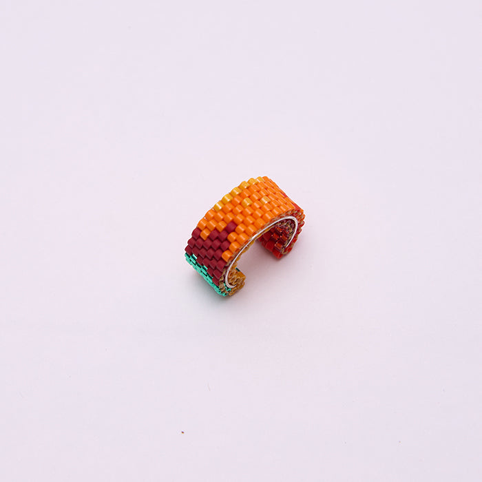 Earcuff inspirado en el colibrí de Cometa. Tejidos 100% a mano, hechos con cristal japonés Miyuki, hilo de cera y aguja. Base en plata 950 recubierta en tejido Miyuki.